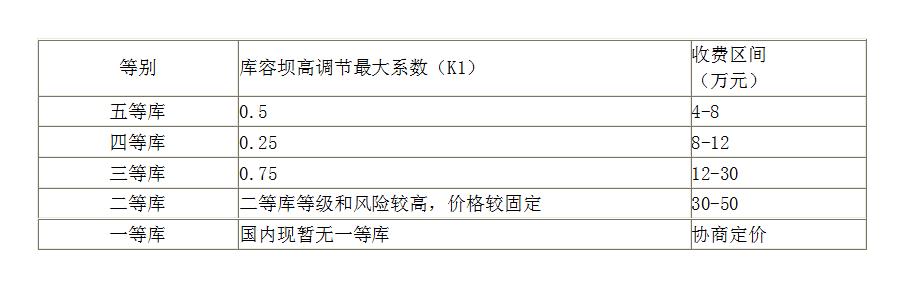 評價費=對應等別收費區間費用×[庫容壩高調節系數(K)+1];